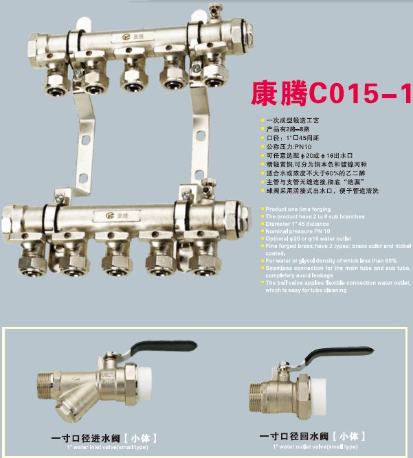 【產(chǎn)品型號(hào)】康騰C015-1款鍛壓一體小體銅分水器